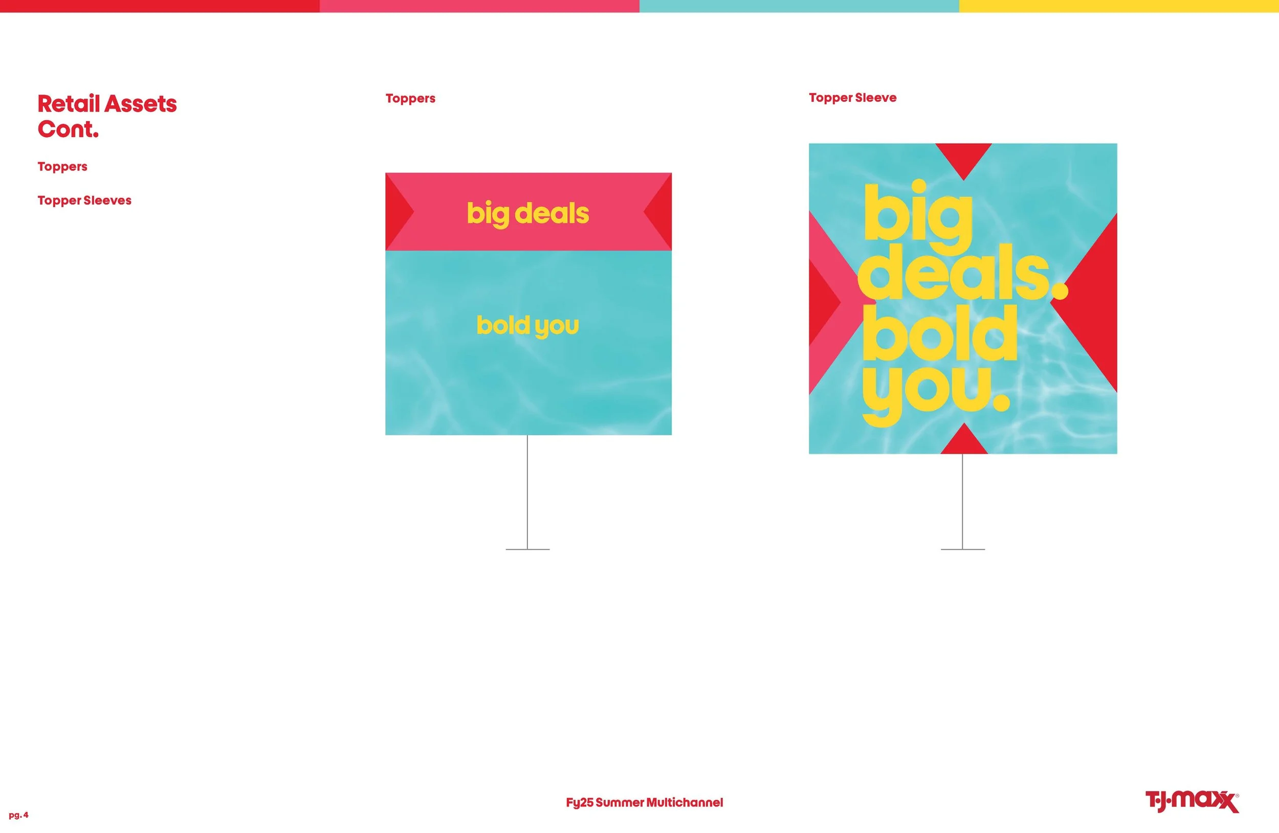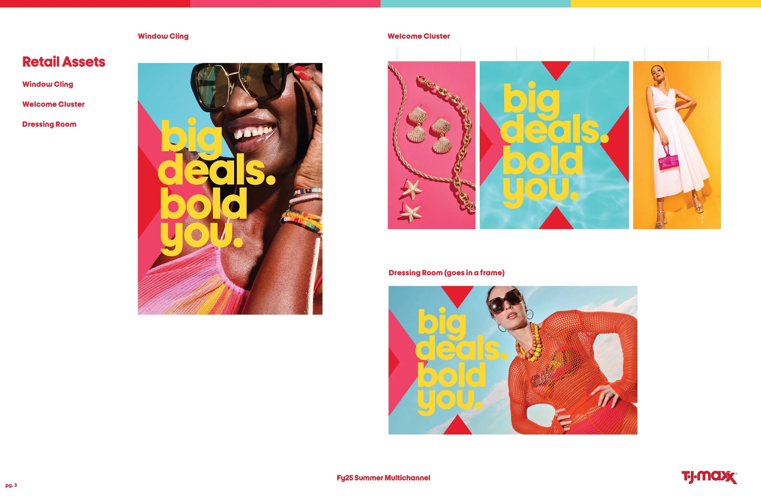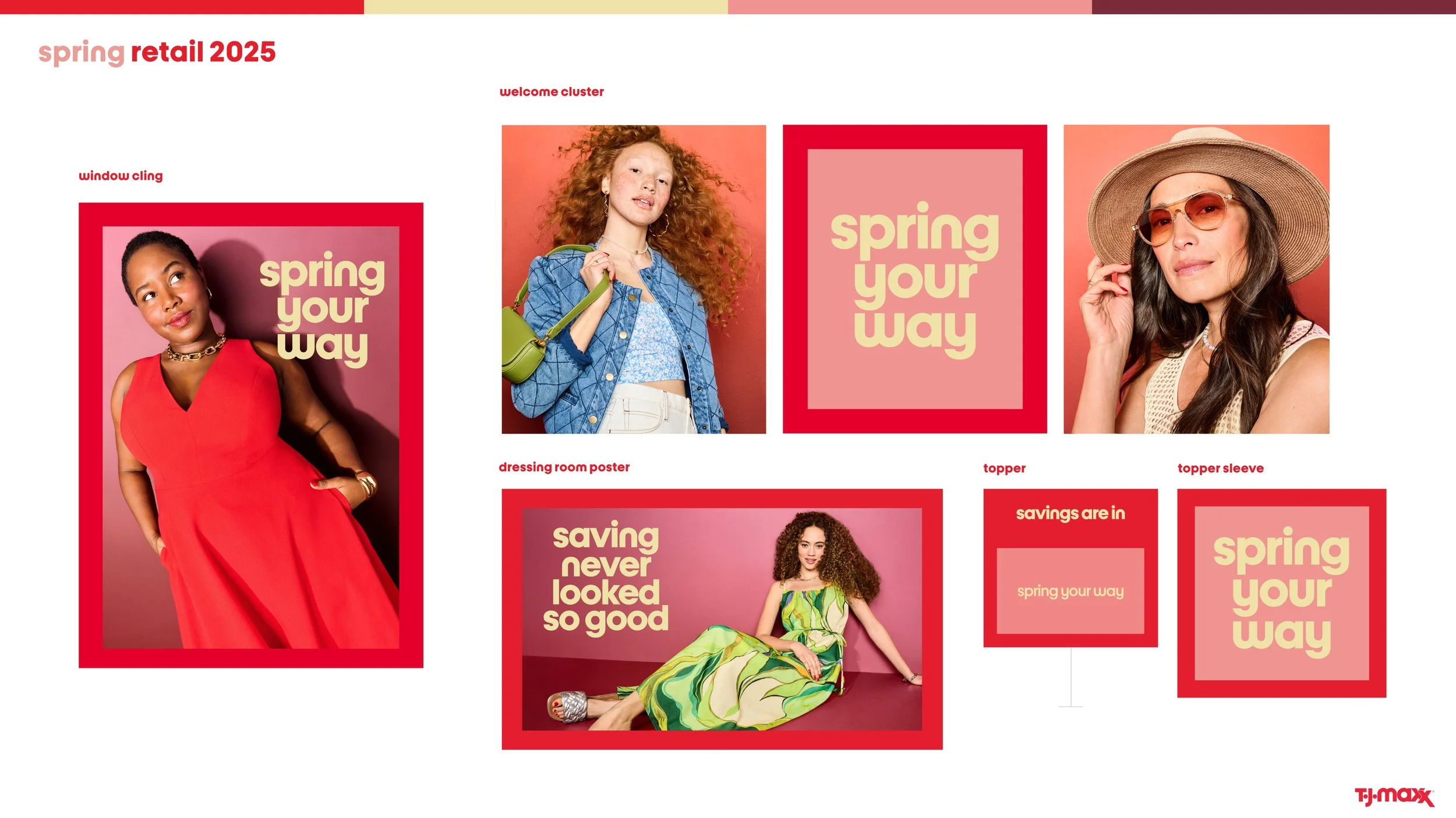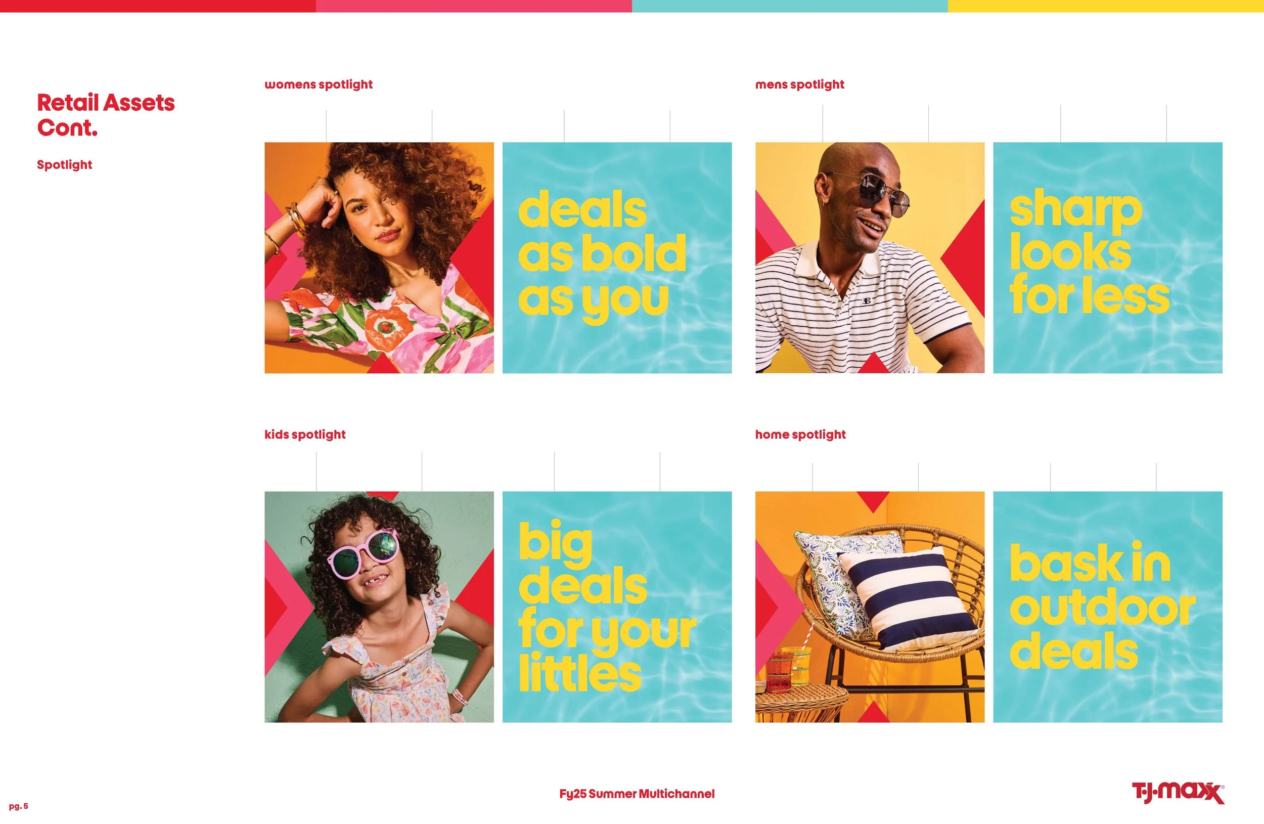 As a designer at TJ Maxx, I have worked on nearly all marketing platforms- site, email, retail, and social. I have been a part of rebrands large and small, rooted in both consumer knowledge and competitive studies. On the digital team I have designed site banners, landing pages and navigational tools. I have designed emails that are sent to millions of customers to drive sales. I have designed two in store packages that were displayed in stores nationwide for Summer 2024 and Spring 2025. On the social team I have produced organic content inspired by what’s in store at the current time. Paid projects involve storyboarding and editing professional video content.