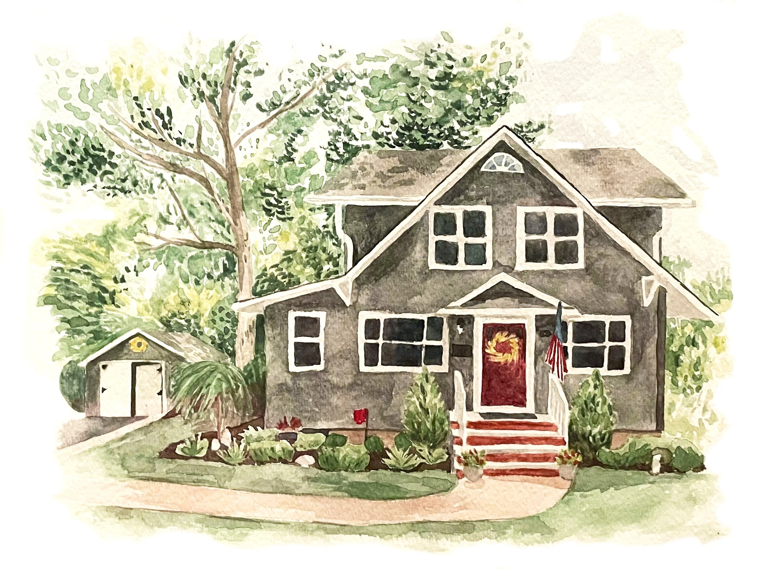 These are watercolor house and landscape portraits made with precision and thoughtful touches to compliment the best of these homes. Available for commission